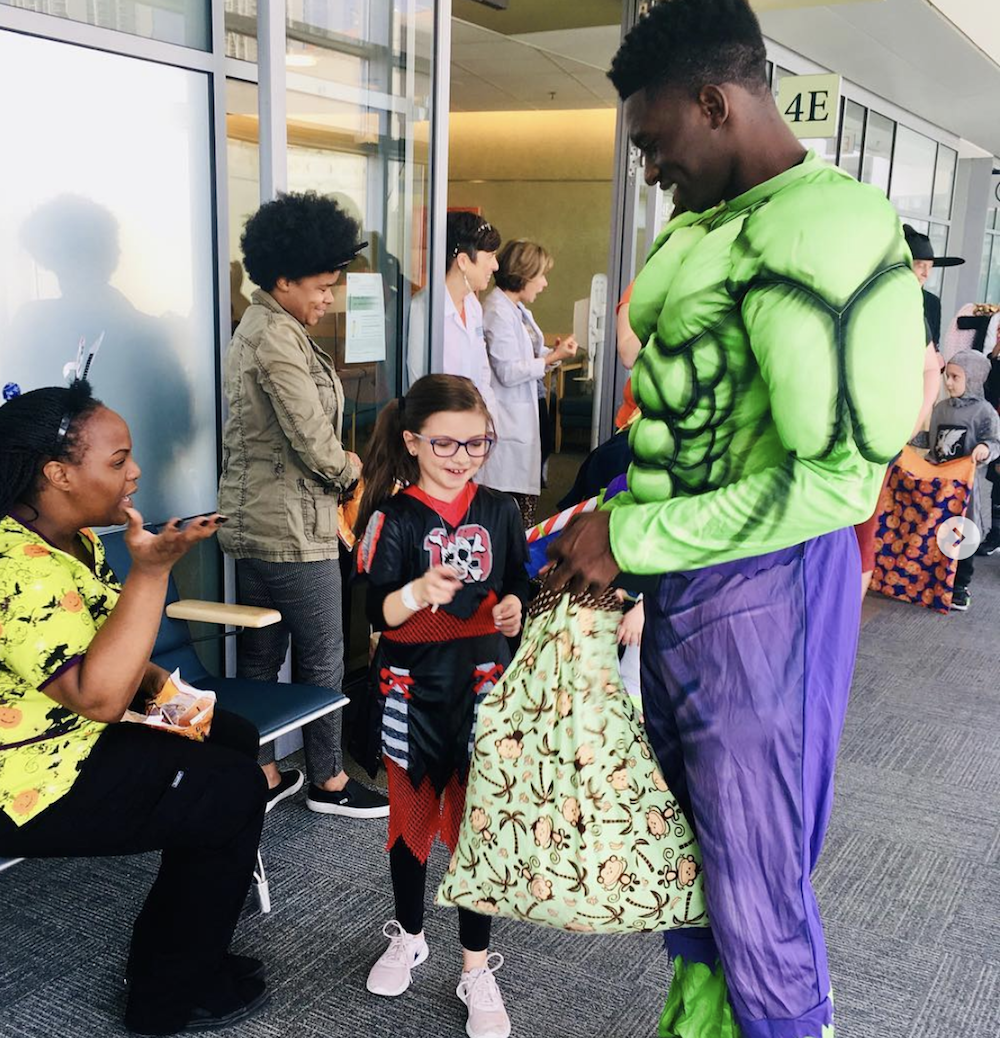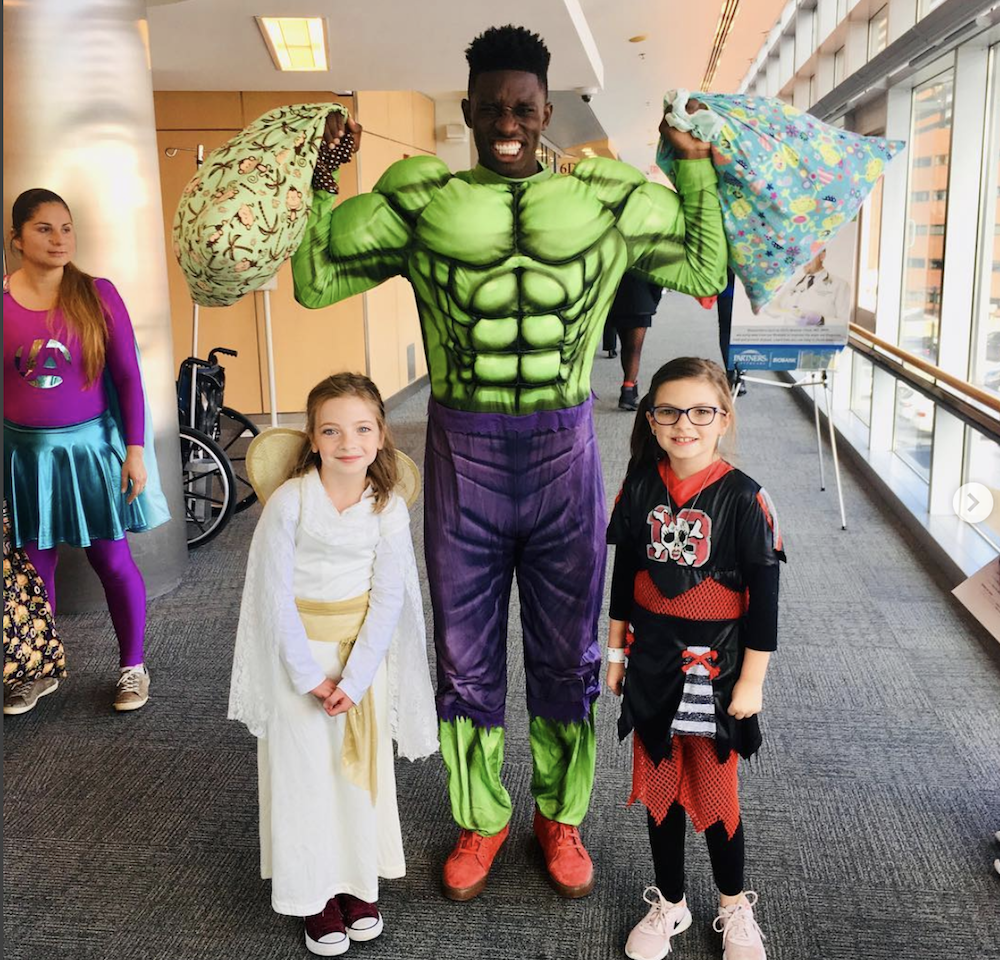 The New England Revolution defender spent his Halloween passing out treats to patients in the pediatric wing of Massachusetts General Hospital.