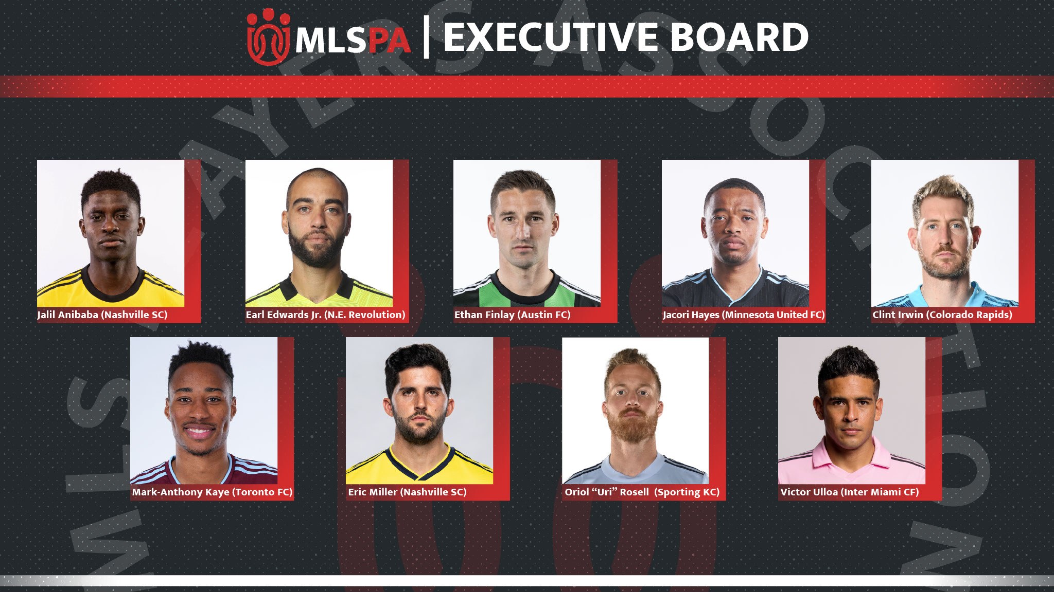 “The members of our Executive Board, both past and present, are a central part of the foundation of the MLSPA,'' said Executive Director Bob Foose. “I want to congratulate and thank our newly elected members. Their commitment to serving their fellow players and to bettering this league demonstrates the dedication and solidarity that has made the MLSPA into what it is today.”